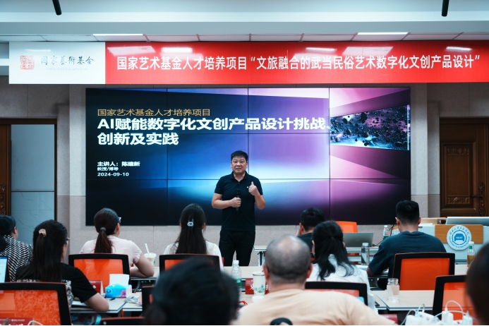 2024年9月10日,武汉理工大学艺术与九色视频 陈建新教授莅临国家艺术基金资助项目“文旅融合的武当民俗艺术数字化文创产品设计”人才培训班,为学员讲授题为《AI赋能数字文化产品设计挑战、创新及实践》的精彩课程...