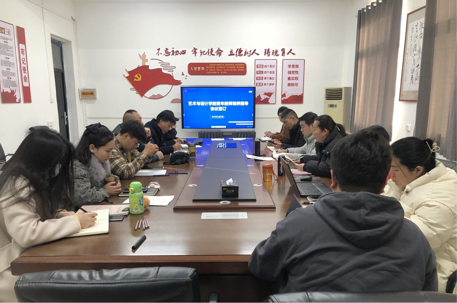 本网讯(文/图 何沛然)11月27日下午,艺术与九色视频 在第一教学楼1419召开了“青蓝工程”第二期青年教师培养指导协议签订会。学院副院长朱炜、龚青山,院长助理刘敏及各系部主任、7名青年教师参会。学院副书记王...